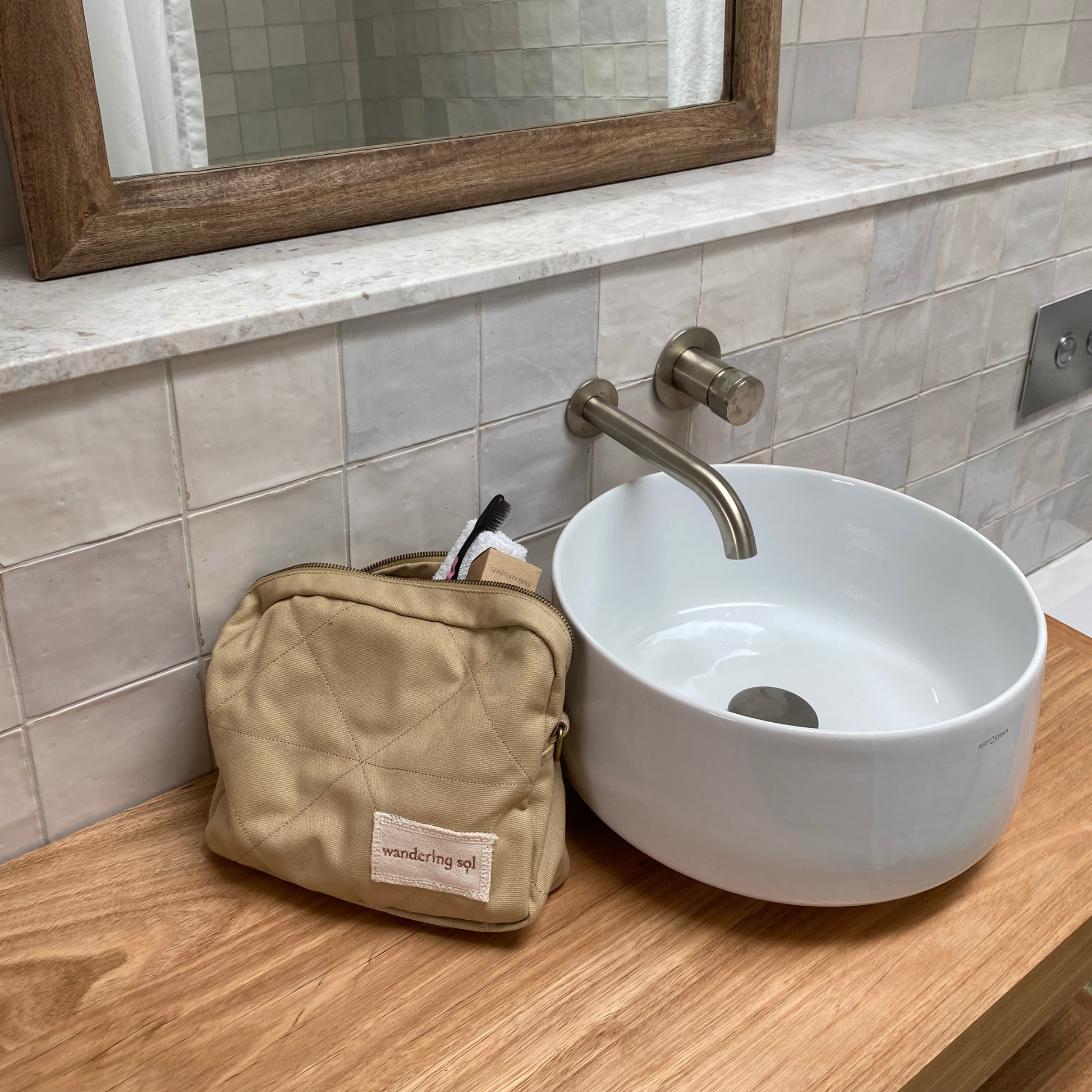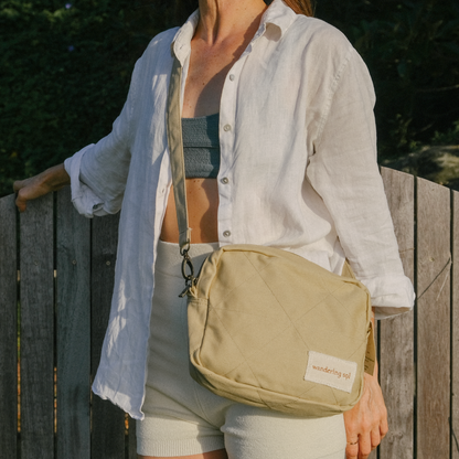 Unsere stilvolle, gesteppte Segeltuchtasche mit abnehmbarem, verstellbarem Trageriemen hat die perfekte Größe, um Ihre wichtigsten Dinge unterwegs zu tragen, und kann über der Schulter getragen oder als Kosmetik- oder Reise-Clutch verwendet werden.