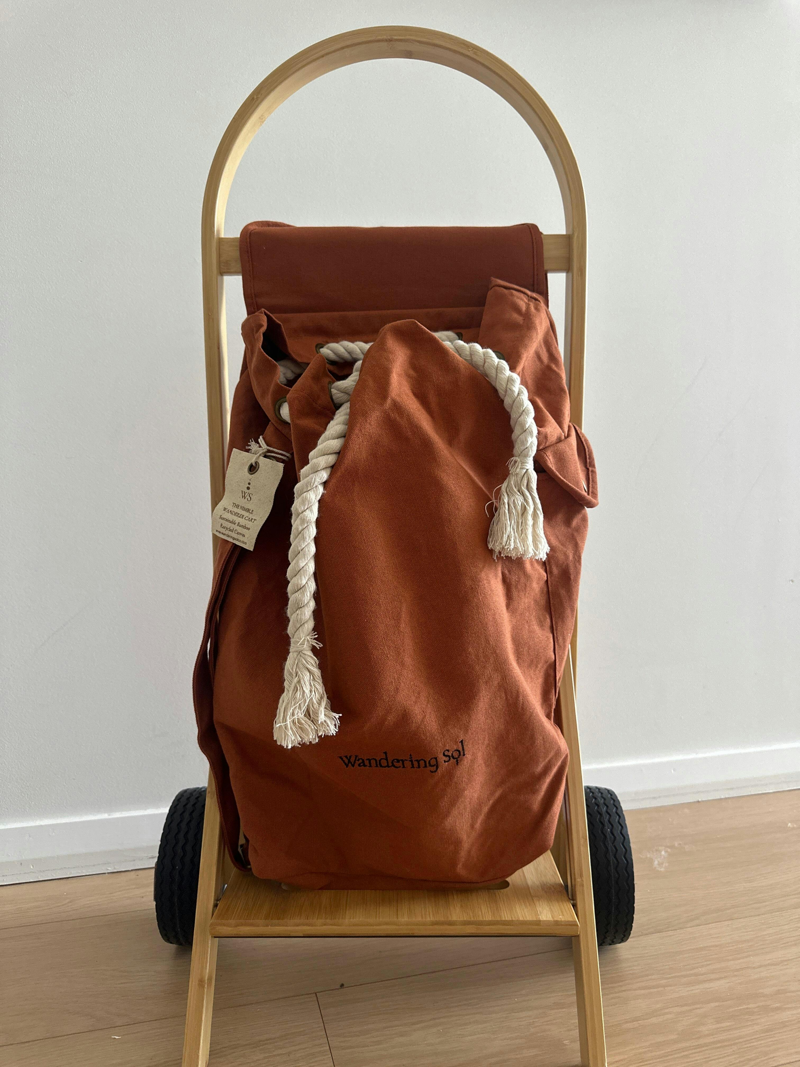 Whether you're hitting the farmers market, planning a picnic, hauling groceries, or the weekend sports gear. Whatever you carry, this cart makes it effortless — carrying up to 35kg while weighing only 5kg itself! And when you’re done? It folds in one easy motion, ready to store in the car or cupboard - or keep it by the front door ready to go like we do (she's too pretty to store away!). Add our Sol Market Collection Bundle for plastic-free produce shopping and wander in style with our Wander-lightly Crossbody.
