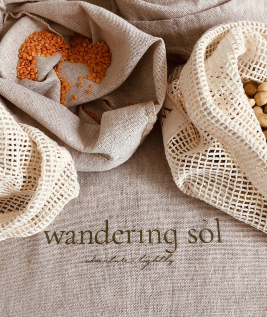 Aléjese del rollo de plástico en su mercado local con nuestras bolsas de productos agrícolas reutilizables Wandering Sol . Fabricados con algodón orgánico certificado por GOTS, cada vez que los...